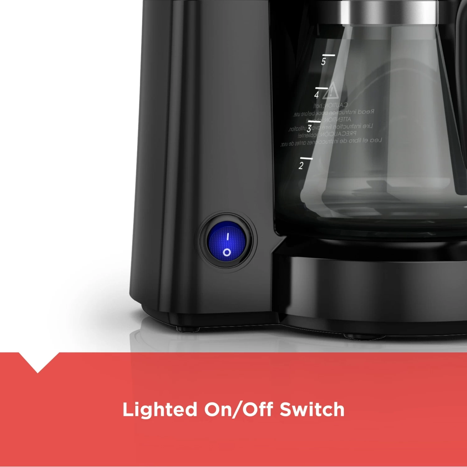Delicious coffee, made easy! The 5-Cup* Coffeemaker gets going with the flip of a switch, heating water to the optimal temperature for full flavor extraction. Coffee brews into the improved 5-Cup* Duralife glass carafe, which is engineered for comfortable handling and drip-free pouring