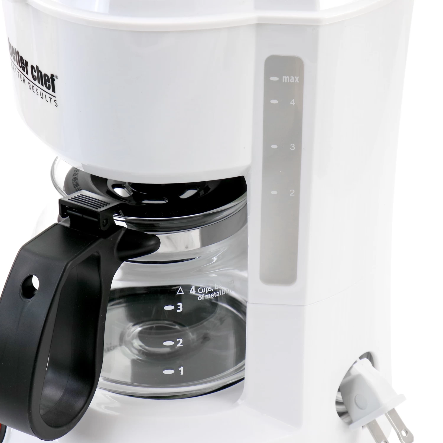 Get the morning going on high note with the Better Chef 4 Cup Compact Coffee Maker in White with Removable Filter Basket. It features a compact sleek design with a removable filter basket for fast and easy cleaning. The coffee machine allows the user to pour out coffee at any point in the brewing process. It Makes coffee, tea, and hot water for parties and events.