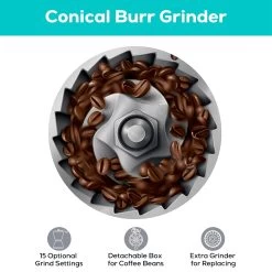 - ☕【Built-in Grinder】: The espresso coffee maker has an automatic built-in precision conical burr grinder, which grinds on demand and deposits fresh ground coffee into the portafilter. With 15 adjustable grind settings you have total control over the grind level, ensuring you get the best flavour from your coffee beans. Our espresso machine with grinder allows you to go from beans to espresso in just a few minutes. Note: For best performance, clean the grinder every 18-25 days to remove buildup.
