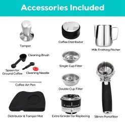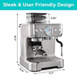 - ☕【Stylish & User-Friendly Design】: With a simple & clear dial interface for selecting steam, hot water and pre-programmed single & double shots, this 20 bar espresso coffee machine with grinder is very easy to use. The 92 oz transparent water tank is detachable and easy to fill. The beautiful brushed stainless steel design makes this latte maker suitable for any size kitchen. We also provide one year warranty, and if we can be of assistance in any way, please don’t hesitate contact us.
