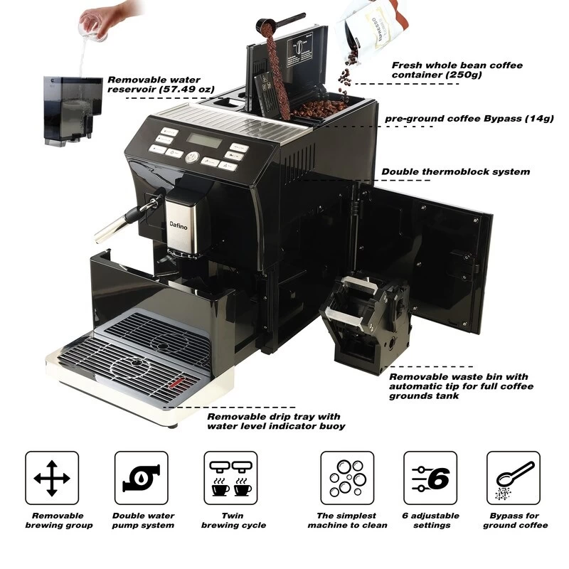 - Product Name: Dafino-205 Fully Automatic Espresso Machine w/ Milk Frother, Black