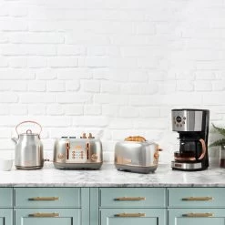 Produce the perfect cup of coffee with ease and style with the Haden filter coffee maker. The vibrant turquoise color will add a cheerful touch to any kitchen. This coffee maker has six functions including: on/off, delay brew, program, hour, minute, and strength. It also has an LCD display and a thirty-second anti-drip feature. The 1.5 liter/12 cup glass carafe and funnel are also dishwasher safe for added convenience. This coffee maker also has a keep warm feature so if one cup isn’t enough, you can simply pop back and pour yourself another cup! Shop the complete collection for more colors and products.Â