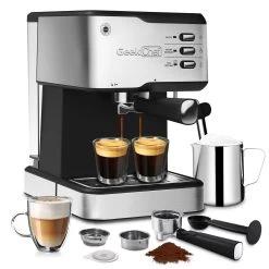 ☕ 【20 Bar High Speed PUMP】: Semi-Automatic Espresso Machine, 20 bar professional energy saving pump,powerful pressure to extract coffee. (Glass cup & milk pitcher are not included).